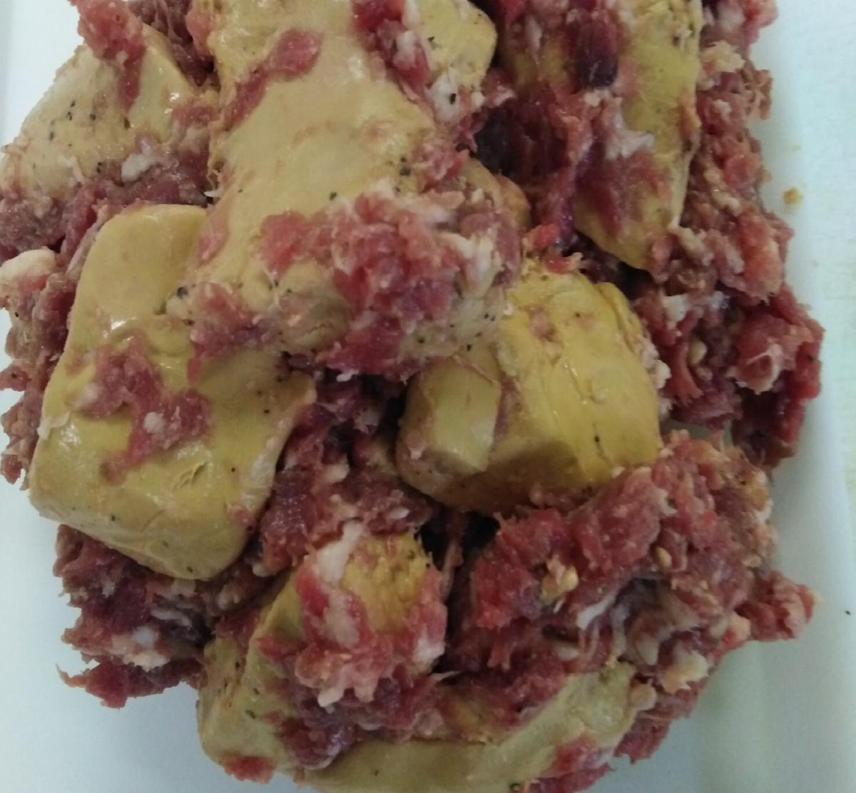 Epaule et poitrine de porc noir gascon, foie gras (25%), œufs, porto sel, poivre
