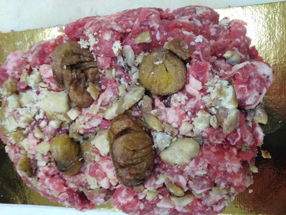 Maigre et épaule de porc, châtaignes 30 %, sel, poivre