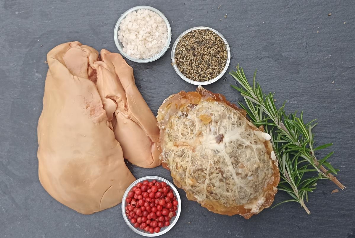 Subtil mélange de chair de porc noir gascon et de foie gras et de baies roses de Madagascar